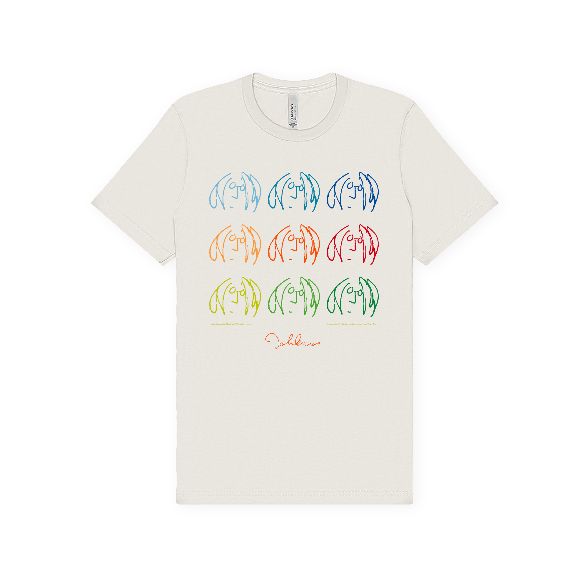 Imagine a world without hunger with this natural-colored John Lennon tee. Featuring a vibrant, rainbow-colored array of Lennon's famous self-portrait doodle, the inspirational phrase Imagine There's No Hunger connects you to Lennon's timeless vision for a better future. Perfect for any Lennon fan committed to social change. Donation: $60